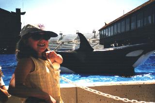 Julia with Shamu, San Diego, 1999