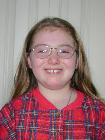 Julia with her new glasses, December 1999